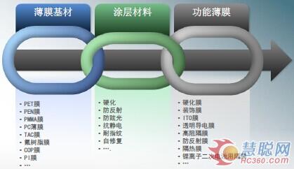 功能性薄膜是指將機能性材料通過表面處理(蒸鍍、PVD、CVD)、鍍膜、印刷、制版、壓光、鍍鋅、復合、薄膜切割等加工制造,賦予其強度、耐熱性、機械性、電子性、光學性、氣體隔離性等特性,成為高附加值的二次產(chǎn)品。